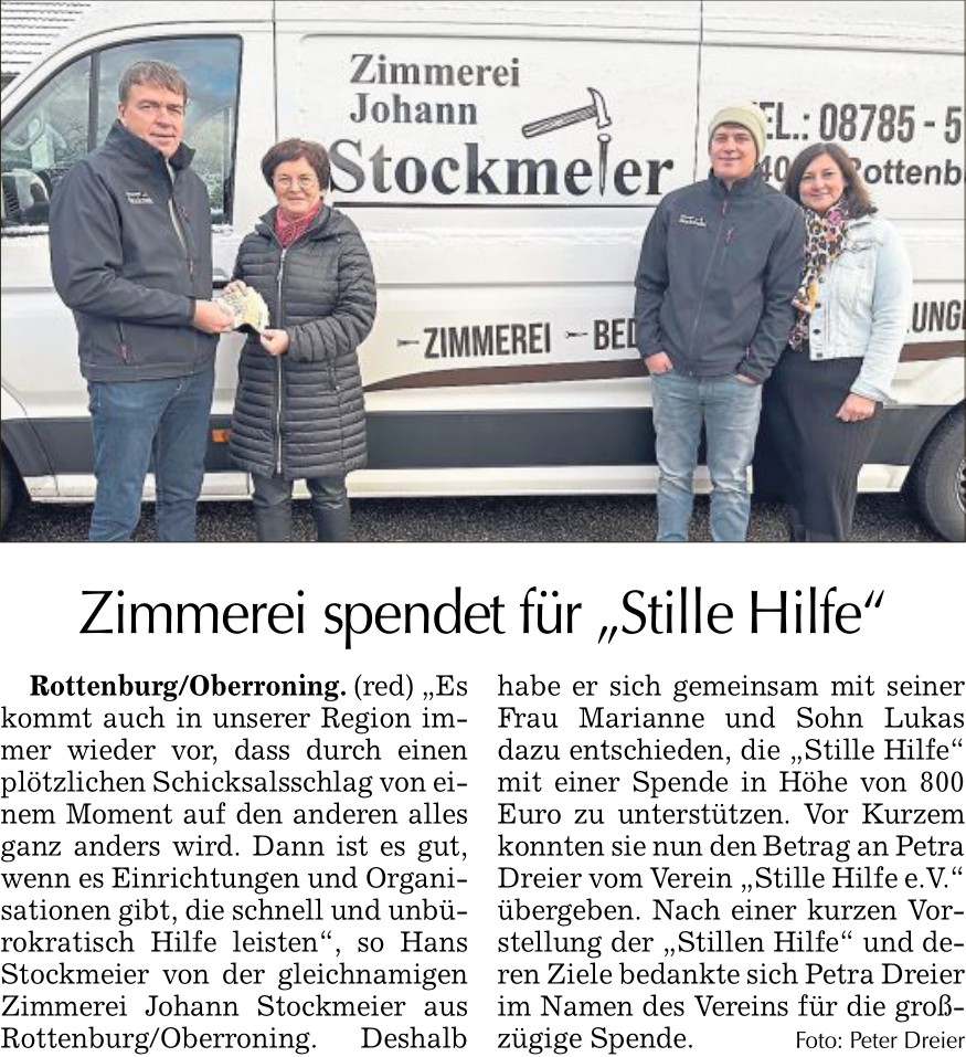 02.01.2023 Firma Denk aus Dirnaich spendet an die Stille Hilfe