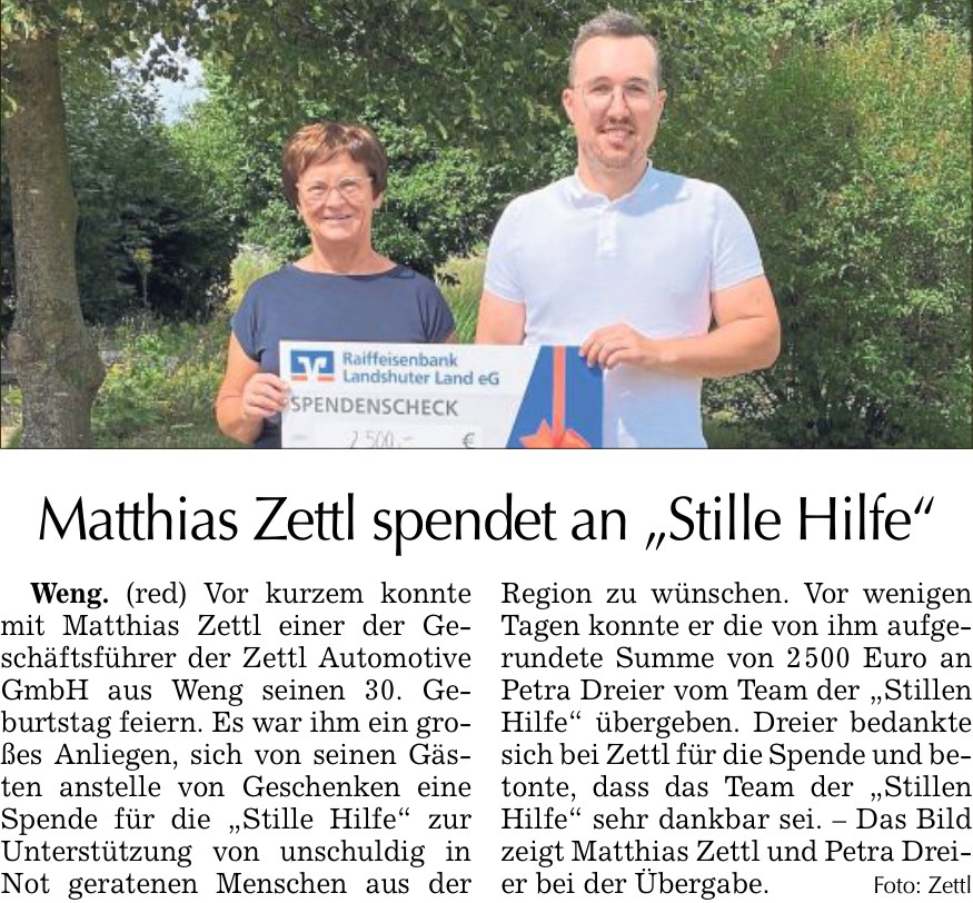 13.07.2023 Spendenübergabe bei Herrn Matthias Zettl