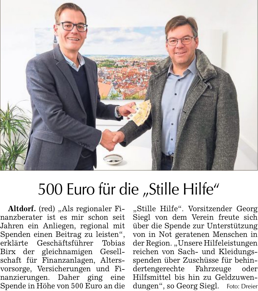 15.12.23 Spendenübergabe beim Finanzdienstleister Tobias Birx, Altdorf