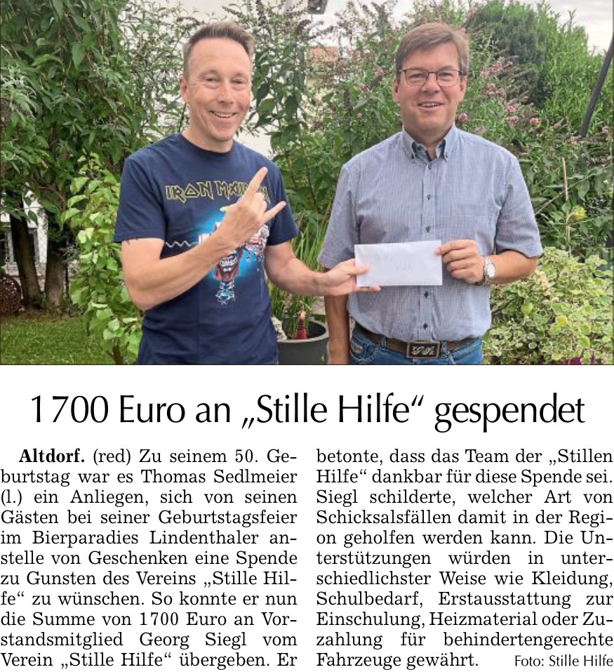20.09.2023 Spendenübergabe bei Herrn Thomas Sedlmeier, Altdorf
