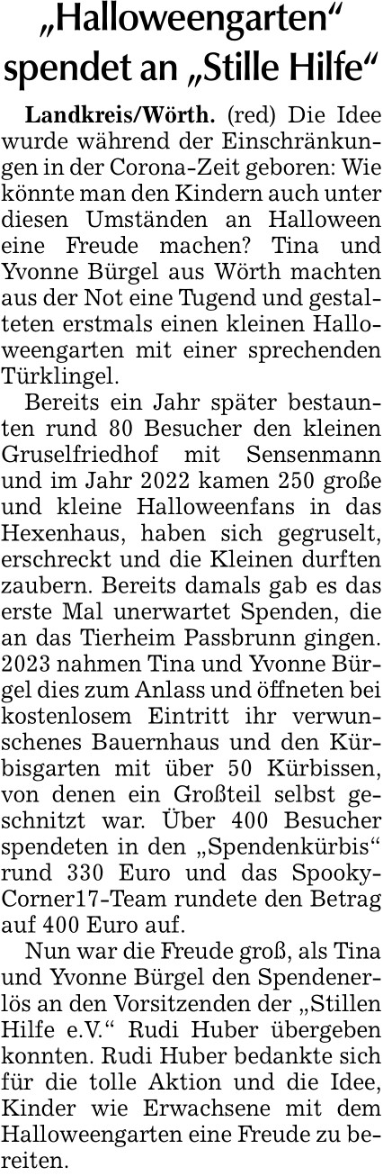 20.11.2023 "Halloweengarten" spendet an die Stille Hilfe, Wörth