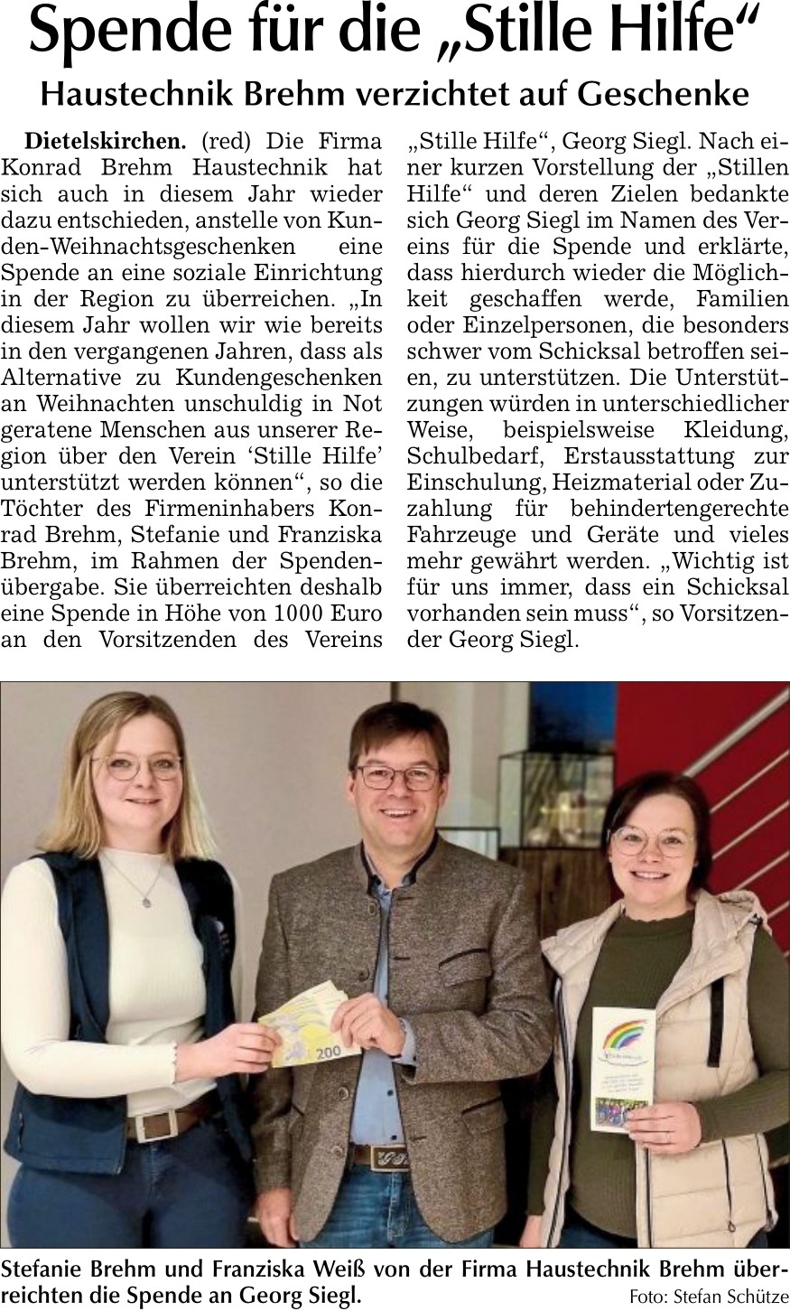 21.12.23 Spendenübergabe bei Haustechnik Brehm, Dietelskirchen