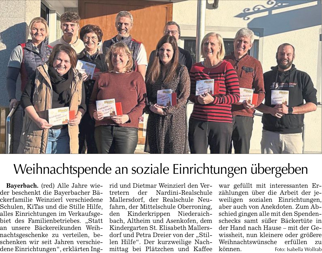 23.12.23 Spendenübergabe bei der Bäckerei Weinzierl, Bayerbach