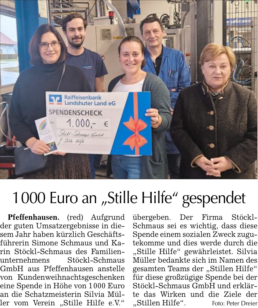 23.12.23 Spendenübergabe bei der Stöckl-Schmaus GmbH, Pfeffenhausen